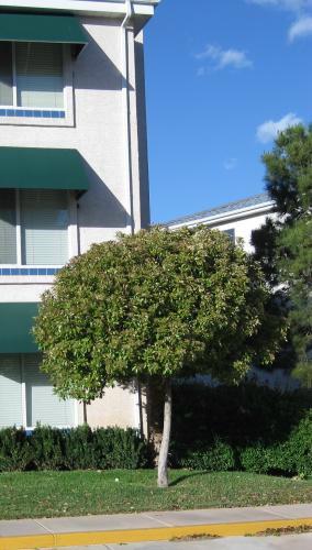 Using patio-trees near an entry or in a courtyard helps to create space on the ground by opening up the base of the plant. This provides a place to plant ground covers or annuals for color. A shaped tree or standard, as we call it, shows a desire to control the atmosphere and looks clean to the eye. It also provides a verticle element for variety. Most folks want a patio or walk to be clear and clutter free, so these fit here nicely.