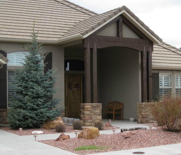 I like to use the Hoopsie Spruce tree. This variety of spruce gets about 12 - 15' tall and is about 6 - 8' in my area. I'm sure these trees might get bigger in say Oregon or Washington, but we just don't have the humidity here in the desert southwest.